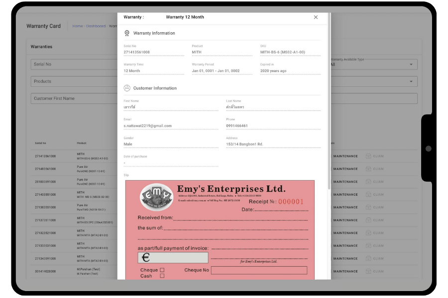 With the product warranty QR code system designed to be managed on Cloud Computing, it allows for 24-hour accessibility. Customers themselves can easily check the status of their products to see whether they are still under warranty or not.
